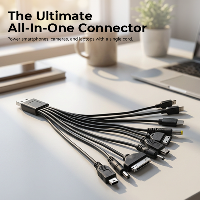 VERSATILIDADE 10 EM 1 - Carregue sem esforço uma ampla variedade de dispositivos com dez conectores diferentes. Este único cabo elimina a necessidade de carregar vários carregadores, tornando-o perfeito para residências com diversos aparelhos e reduzindo a bagunça.