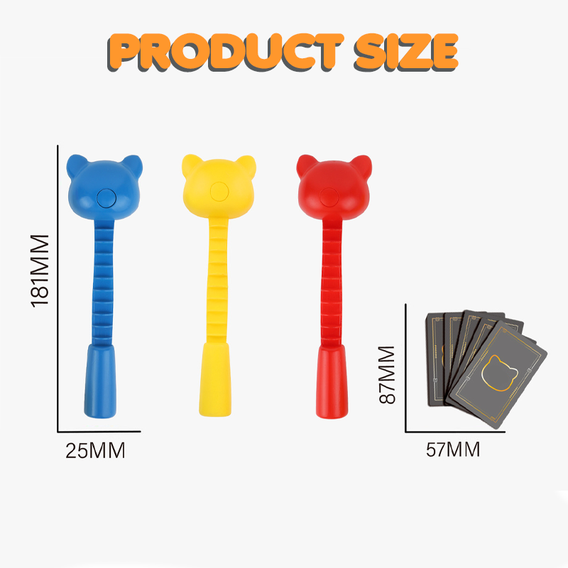 MARTELOS DE SUCÇÃO ÚNICOS: Cada jogador empunha um martelo com ventosa em forma de pata de gato. Esta mecânica divertida requer velocidade e precisão para pegar o cartão correto, adicionando um elemento físico emocionante e satisfatório ao jogo.