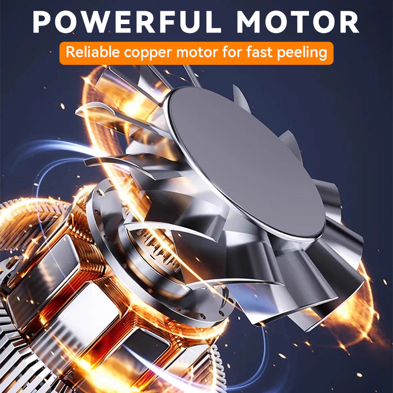 MOTOR POTENTE COM FIO DE COBRE – Equipado com um motor de alto desempenho com fio de cobre, este descascador elétrico garante uma descascagem eficiente e rápida de várias frutas e legumes. O motor fornece energia consistente, permitindo que até mesmo frutas pequenas sejam descascadas sem esforço, sem engasgar ou perder desempenho. Sua durabilidade e confiabilidade o tornam um adição que economiza tempo para qualquer cozinha.