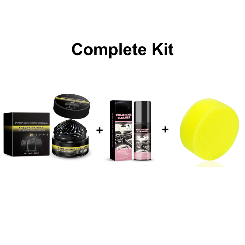 RESTAURA O BRILHO PRETO INTENSO INSTANTANEAMENTE - Esta cera de alto desempenho revitaliza rapidamente pneus opacos e oxidados, restaurando seu brilho preto profundo original. A fórmula avançada penetra na superfície do pneu, eliminando a opacidade e criando um acabamento espelhado que realça a aparência geral do seu veículo. O resultado é um visual de showroom que faz seu carro se destacar — perfeito para o dia a dia ou ocasiões especiais.