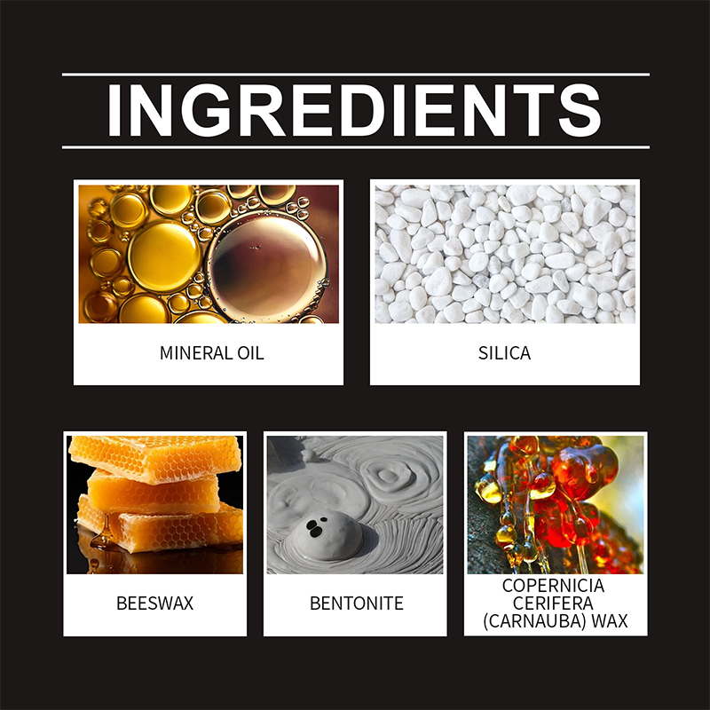 Ingredientes: Óleo mineral, sílica, cera de abelha, bentonita, cera de carnaúba